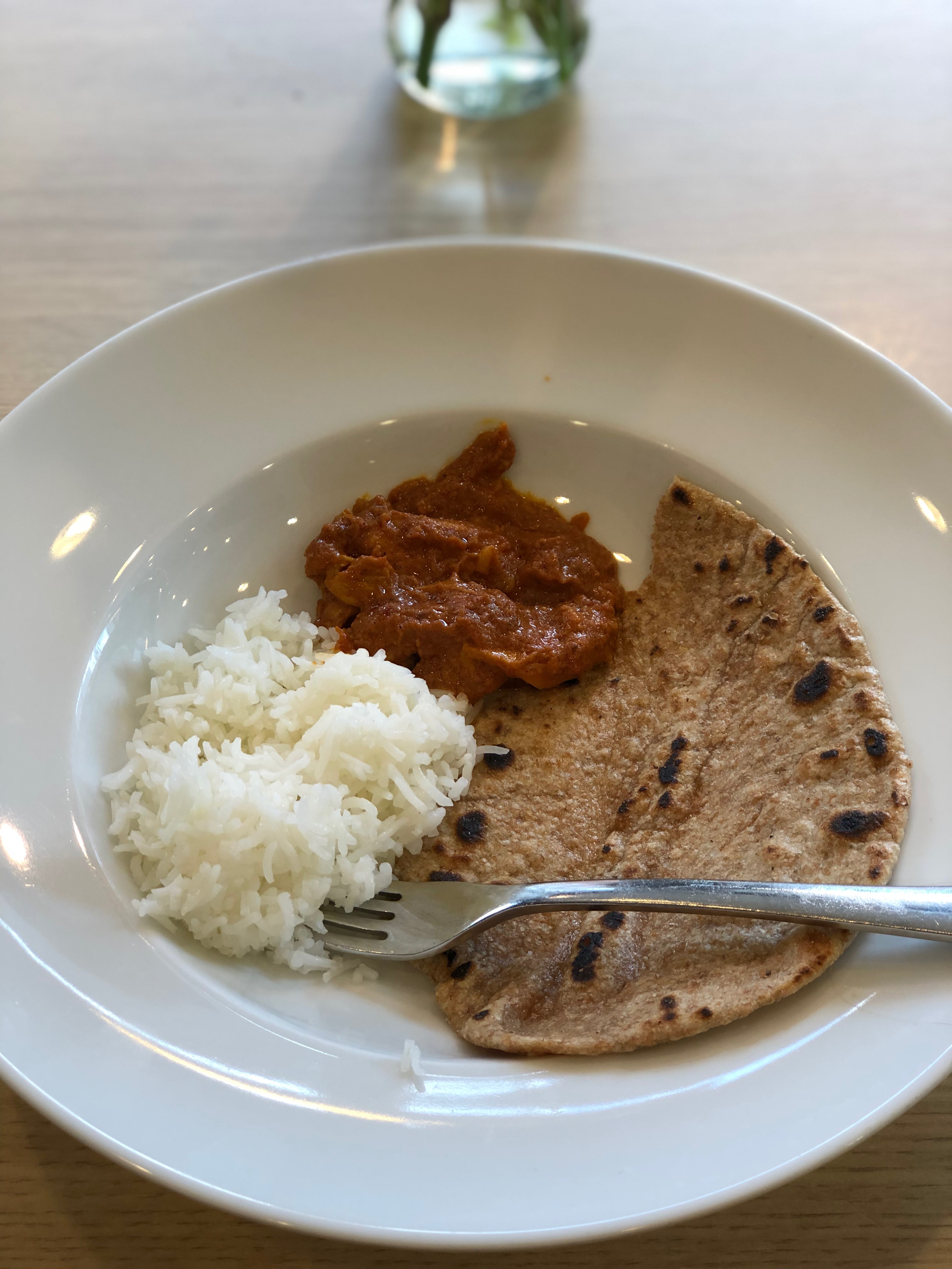 It can be made quite spicy although for our American palates the spice was not made too spicy as we are not used to eating spicy curries. It is a very enjoyable dish with the creamy sauce really highlighting the chicken. The naan bread and rice are served with the chicken and used to dip in the rice and gravy.
